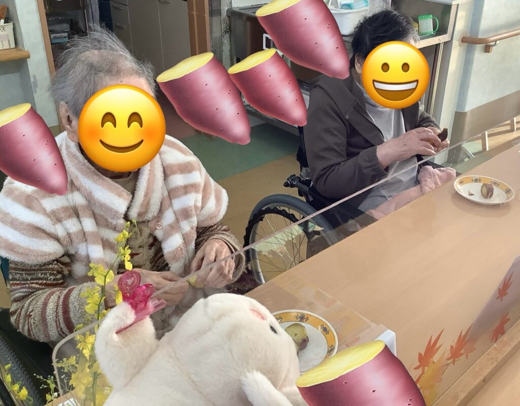 11月12日19日で焼き芋レクを行いました😊利用者様皆様とても喜んで召し上がって頂けました🍠「丁度良い焼き加減だったわ」「とても甘いお芋ね」「もっと食べたいわ」「焼き芋懐かしいわ」等いろいろなお話をしながら召し上がっていらっしゃいました🤗