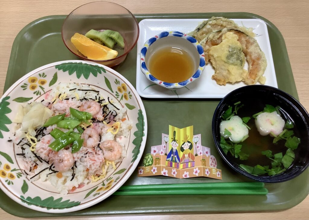 本日、花見の里ではひな祭り献立を提供しました。